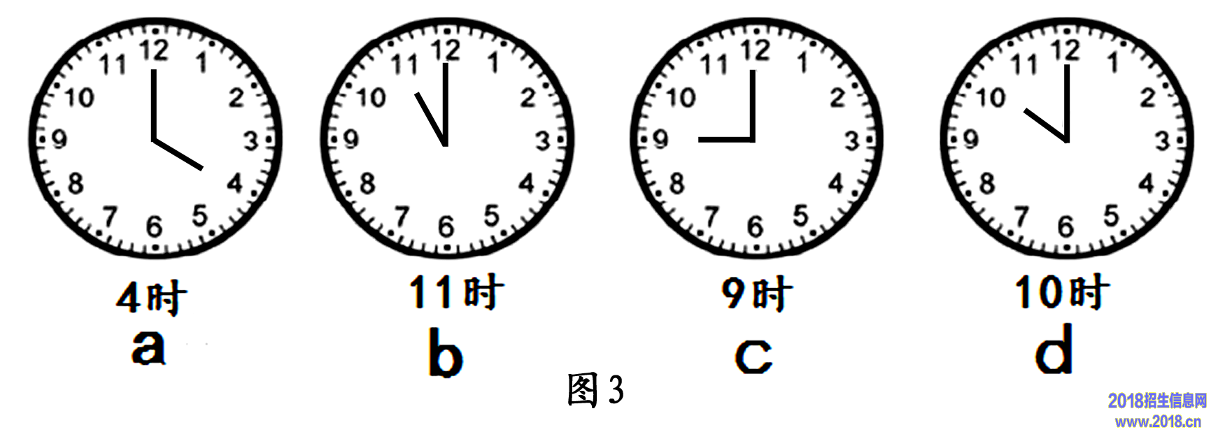 13.如果图3中c图表示北京时间,图3中哪一个钟表表示的是莫斯科时间