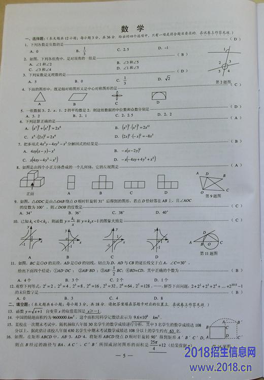 2015年广西贺州市中考数学试题(扫描版,含答案)