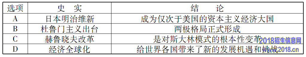 29.历史结论离不开对史实的正确解读,下列各项史实与结论对应关系正确的是