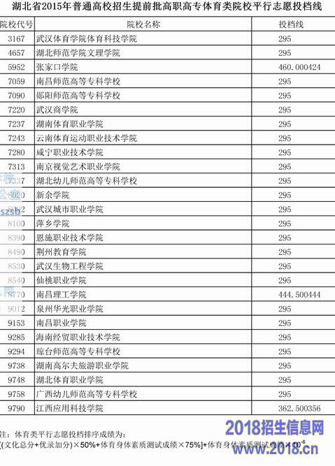 2015湖北高招提前批高职高专体育类院校平行志愿投档线