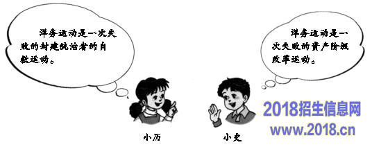 26.关于洋务运动的性质,小历、小史有不同认识(如下图)。你同意他们俩谁的意见?为什么?