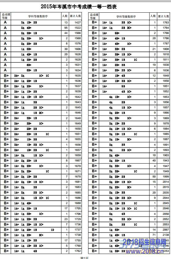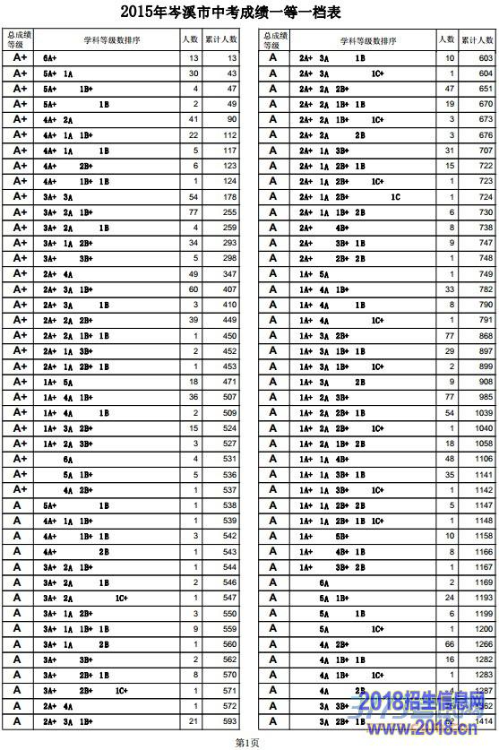 第1页2015年岑溪市中考成绩一等一档表