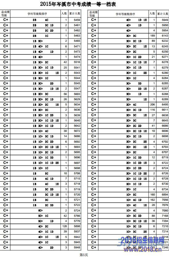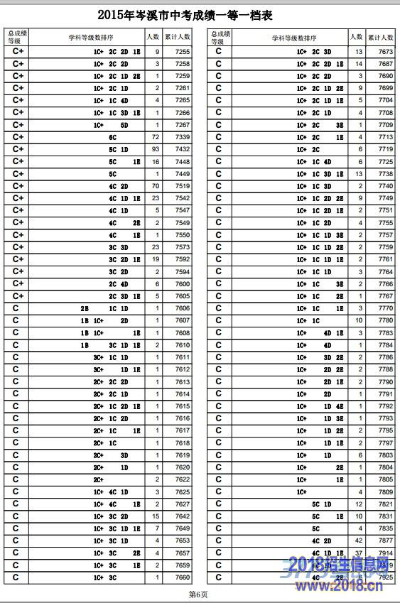 第6页2015年岑溪市中考成绩一等一档表
