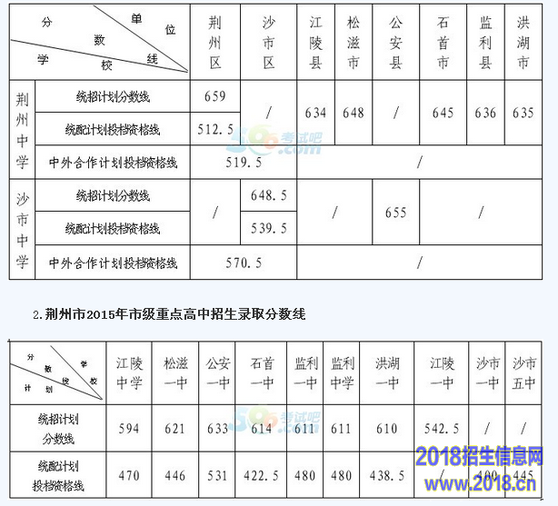附件:1.荆州市2015年省级重点高中招生录取分数线