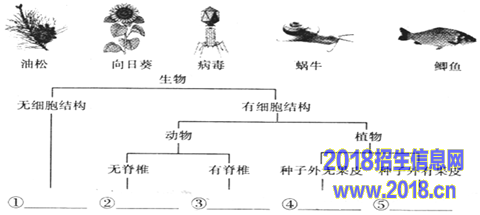 29.(5分,每空1分)①病毒 ②蜗牛 ③鲫鱼 ④油松 ⑤向日葵