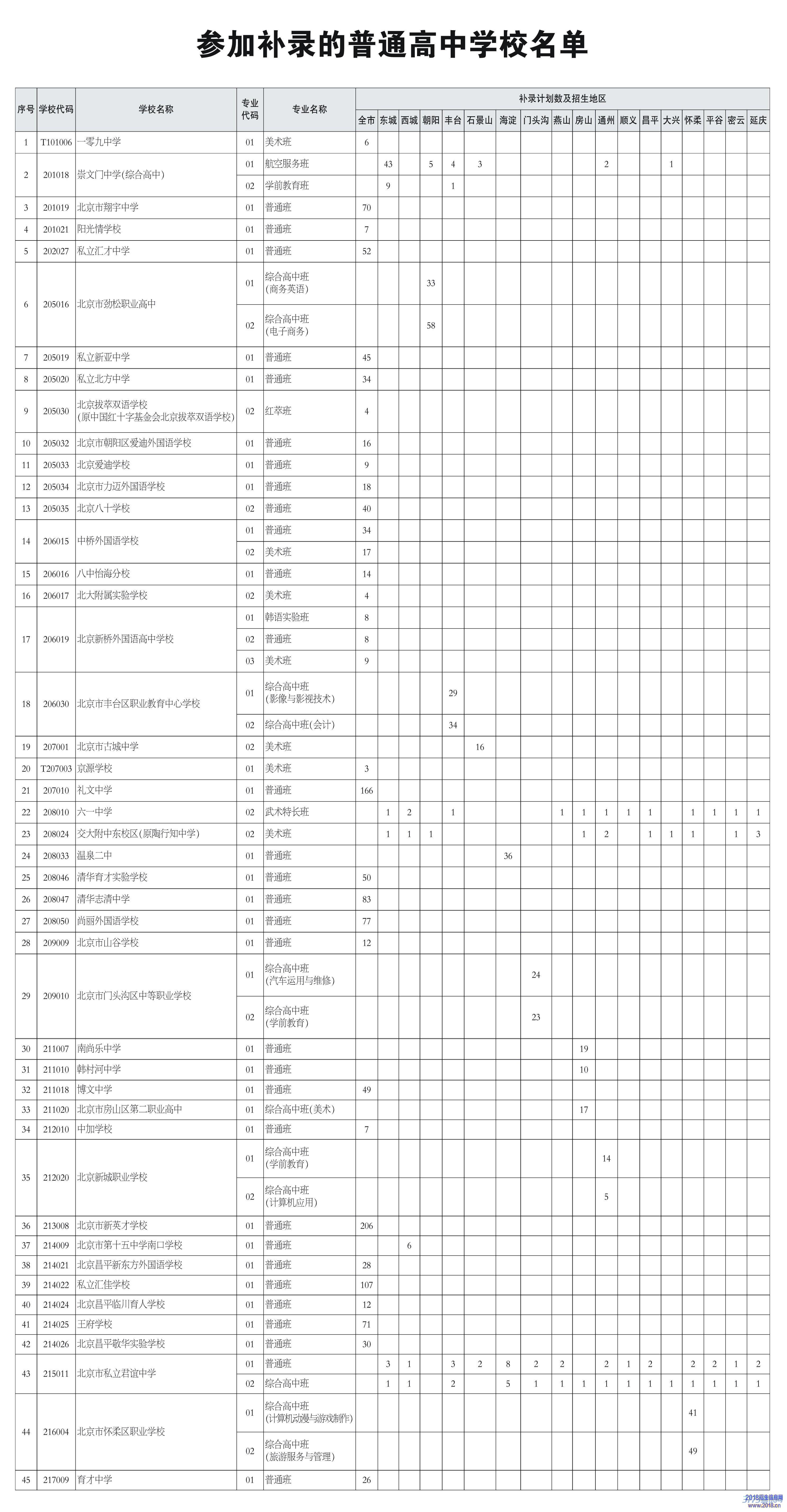 (一)各区县中招办于7月30日将《北京考试报》第9期“中招特刊”及“补录考生登记表”发给未录考生。