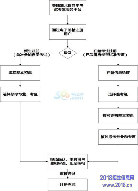 湖北省高等教育自学考试网上注册与现场确认流程图