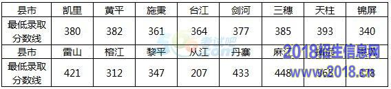 2015年面向全州招生计划的四所学校具体控制分数线为:凯里一中695分、州民族高中626分、振华民族中学550分、凯里学院附中554分。面向凯里市统招的两所州属学校控制分数线为:州民族高中592分、凯里学院附中537分。州民族高中和凯里学院附中联盟班招生控制分数线为569分。