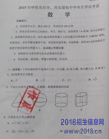 2015年内蒙古呼伦贝市、兴安盟中考数学试题(扫描版,无答案)