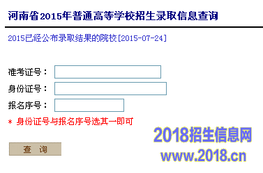 2015河南高考二本录取结果查询入口:河南招生考试信息网