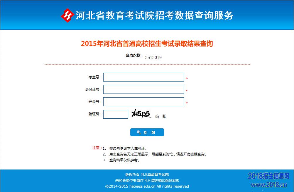 2015河北三本录取结果查询(河北省教育考试院)