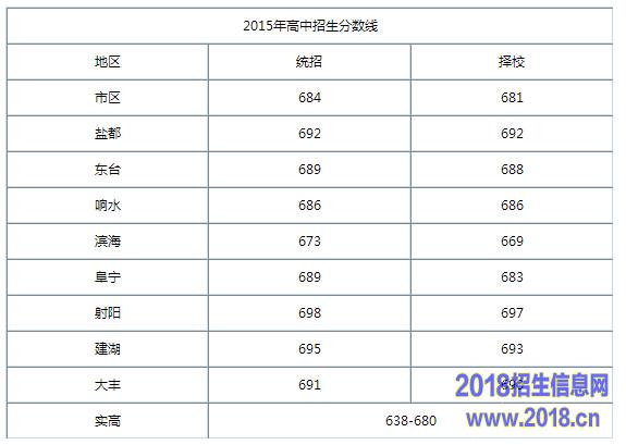 盐城中学:市区统招684,择校681,盐都统招692,择校692。 盐城市第一中学:市区统招651,择校659。盐都统招649,择校638;