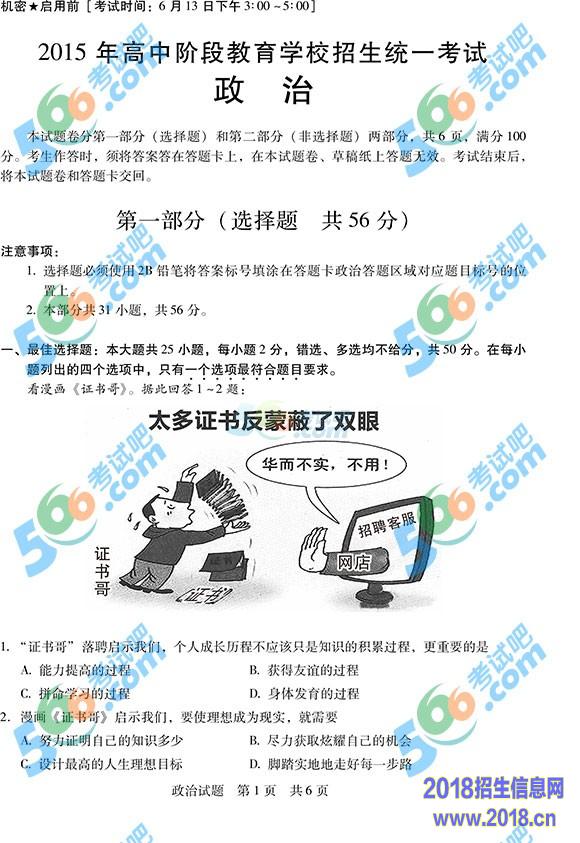 2015年四川攀枝花中考政治试题及答案(图片版)