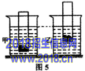 12.在两支相同的平底试管内装入等量铁砂,然后分别放入装有甲、乙两种不同液体的烧杯里,其静止状态如图5所示,则下列说法正确的是