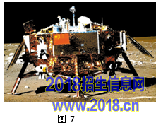 17.如图7是嫦娥三号着陆器图片,该图是由月球车上全景相机拍摄的。拍照时,着陆器到镜头的距离要 (填“大于”、“等于”或“小于”)两倍焦距。若要把着陆器的像拍得更大些,则应使照相机的镜头 (填“远离”或“靠近”)着陆器一些。