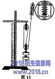 24.在“测滑轮组机械效率”的实验中,先用弹簧测力计测量钩码所受的重力G,再按图13所示的连接方式组装好滑轮组,并分别记下钩码和弹簧测力计的起始位置。
