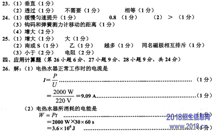四、 应用计算题(本大题共3小题,第26小题6分、27小题9分、28小题9分,共