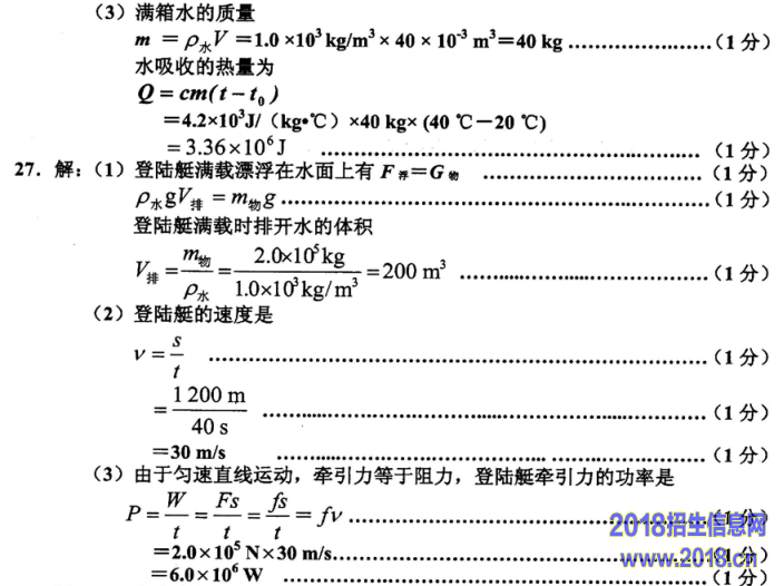 (1)登陆艇满载漂浮在水上时排开水的体积;