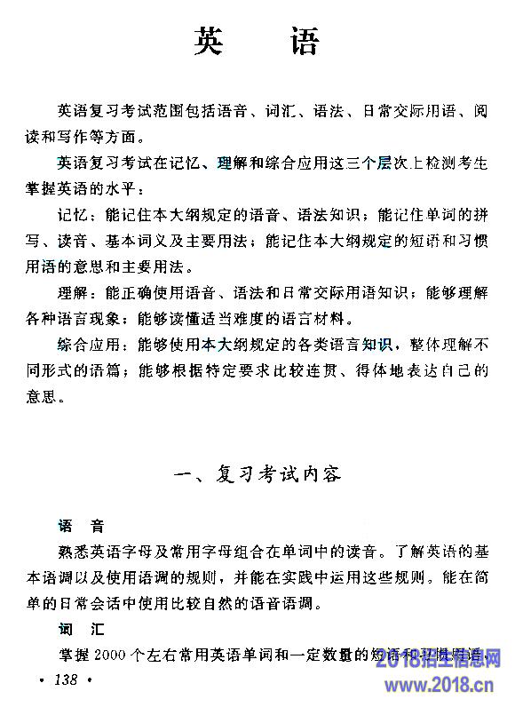 2015年成人高考高起点《英语》考试大纲