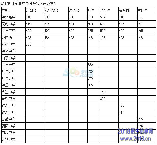 2015年四川泸州中考各高中院校录取分数线公布