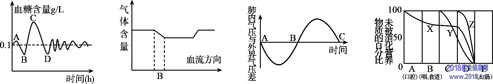 D.图4是三种营养物质在消化道各部位被消化的程度,Z曲线表示蛋白质的消化过程