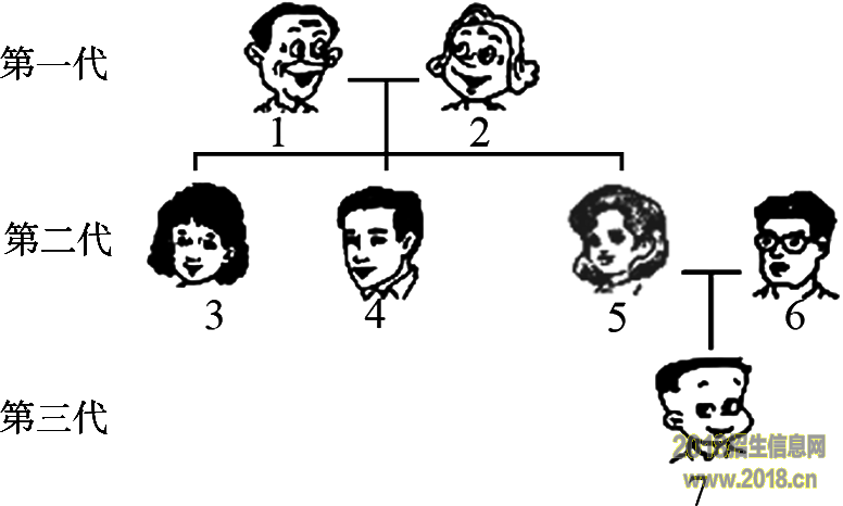 (5)第三代7号个体的性染色体组成为XY,其中Y染色体来自 (5或6)。