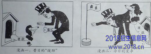 (3)漫画一“昔日的援助”是指二战后的什么历史事件?结合所学知识回答,西欧从接受“援助”发展到与之“竞争”的途径是什么?(4分)
