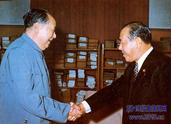 15.右图是1972年毛泽东会见日本内阁总理大臣田中角荣