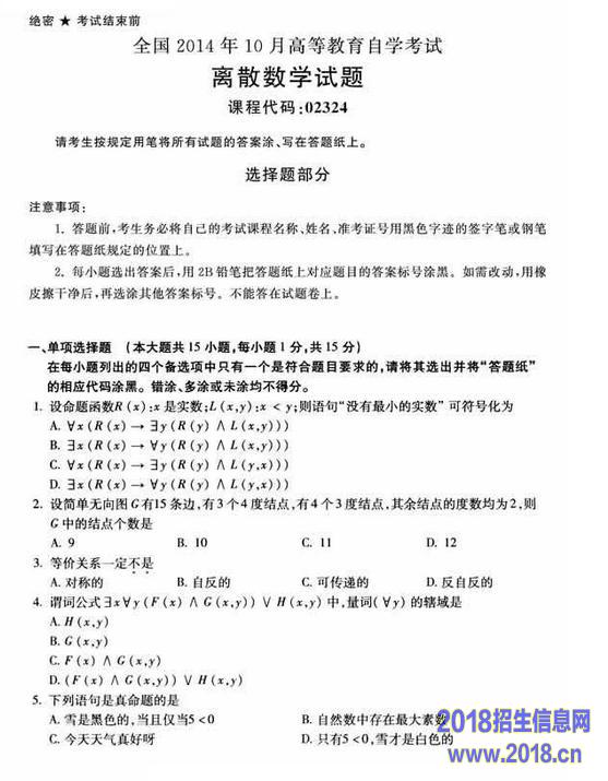 全国2015年4月自考离散数学真题
