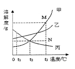 26.下图是甲、乙、丙三种固体物质的溶解度曲线,且它们溶于水时溶液温度均无明显变化。
