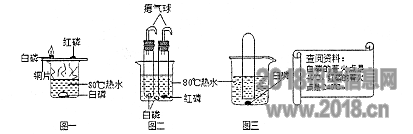 (3) 将装有某气体的大试管口朝下垂直插入水中,使试管罩住白磷(如图三所示),结果观察到了“水火相容”的奇观,则大试管所装气体可能是 .