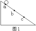 5. 如图1所示,一小钢球从光滑固定斜面的a点由静止释放,相继经过b、c两点,ab=bc,则下列判断正确的是(忽略空
