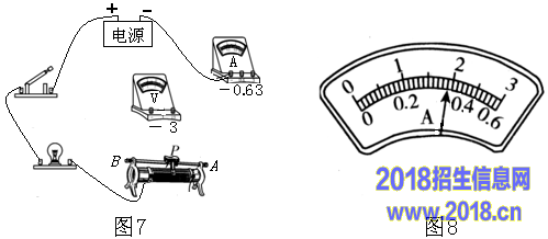 ⑷ 排除故障后,移动滑片P,使电压表的示数为 V时,小灯泡恰好能正常发光,此时电流表的示数如图8所示,则小灯泡的额定功率为 W(保留两位小数)。