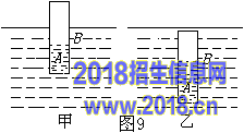 ⑵ 若要使容器B恰好竖直悬浮在水中(如图9乙所示)注入液体A的体积是多少?