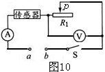 当电路中电流最大为I 0=0.3A时,传感器两端电压为6V