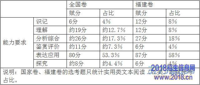 此外,就各类阅读的文本而言,全国卷比福建卷更长、更复杂、更有深度,阅读题的应答也更有难度。