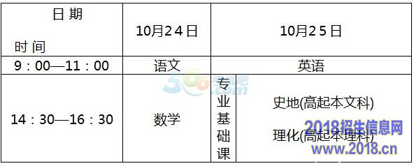 高中起点升本、专科考试时间表