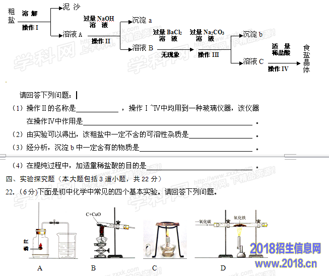 (3) BaCO3 (4)除去过量的氢氧化钠和碳酸钠
