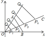 分析: 利用特殊直角三角形求出OPn的值,再利用∠AOB=60°即可求出点Qn的坐标.