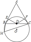 (2)若E,F分别是边AB,AC上的两个动点,且∠EDF=120°,⊙O的半径为2,试问BE+CF的值是否为定值?若是,求出这个定值;若不是,请说明理由.