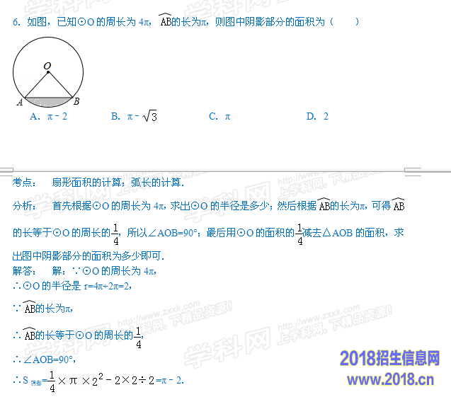 点评: 此题主要考查了扇形面积的计算,以及弧长的计算方法,要熟练掌握,解答此题的关键是要明确求阴影面积常用的方法:①直接用公式法;②和差法;③割补法.