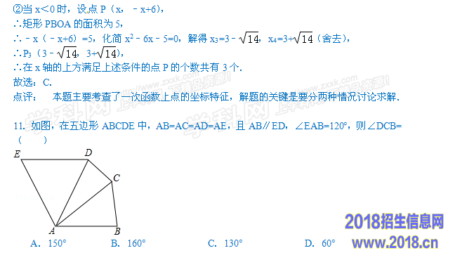 11.如图,在五边形ABCDE中,AB=AC=AD=AE,且AB∥ED,∠EAB=120°,则∠DCB=( )