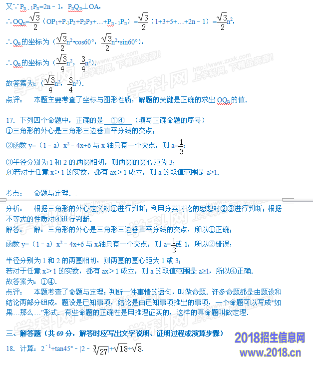 17.下列四个命题中,正确的是 (填写正确命题的序号)