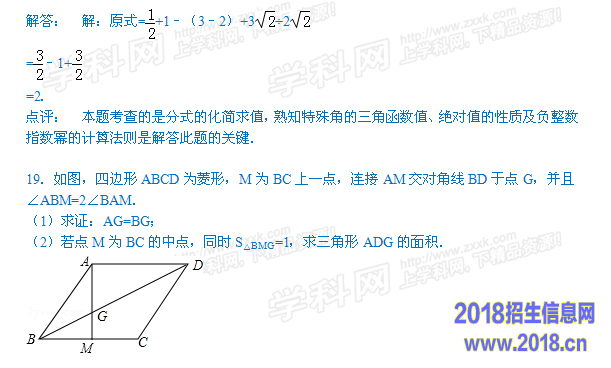 分析: 分别根据特殊角的三角函数值、绝对值的性质及负整数指数幂的计算法则分别计算出各数,再根据实数混合运算的法则进行计算即可;