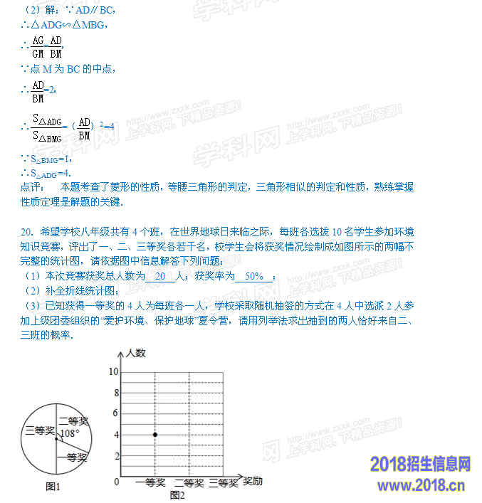 分析: (1)先利用扇形统计图计算出一等奖所占的百分比,然后用一等奖的人数除以它所占百分比即可得到获奖总人数,再计算获奖率;