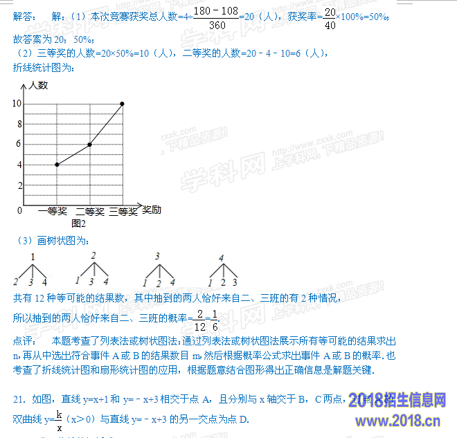 (2)分别计算出二、三等奖的人数,然后补全折线统计图;