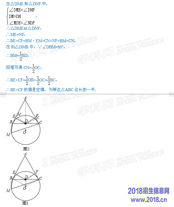 BC,于是可判断BE+CF的值是定值,为等边△ABC边长的一半.