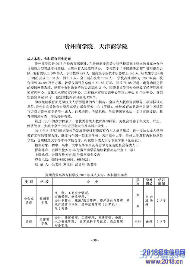贵州商学院天津商学院2015成人高考