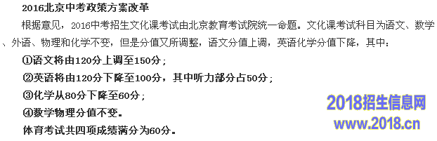 2016北京中考政策方案改革