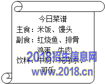 (1)如图是某校食堂的食谱,从所含营养素分析,除水和无机盐外,主食中主要含有营养素是 ,食谱中缺少的营养素是 .